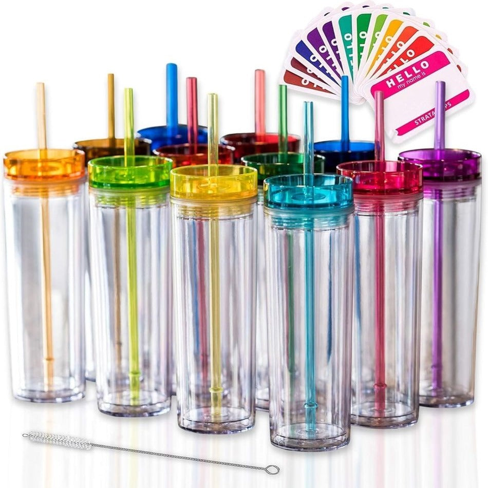 Strata Cups Copos Coloridos Finos com Tampa e Palhinha